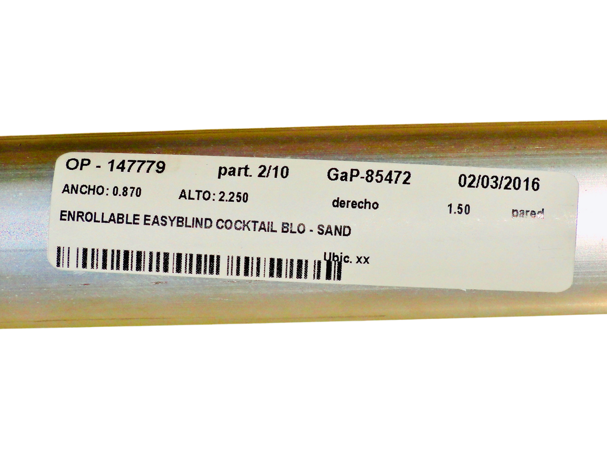 Especificaciones: Marca: Blind, Modelo/Línea: Cocktail Blo - Sand, Material: (PVC) de Alta Calidad con Función Black Out, Antigüedad (Fabricación): 02/03/2016 (Aunque sin uso real, estado impecable), Mecanismo: Enrollable con Cadena (Se especifica si es izquierdo/derecho en las medidas).