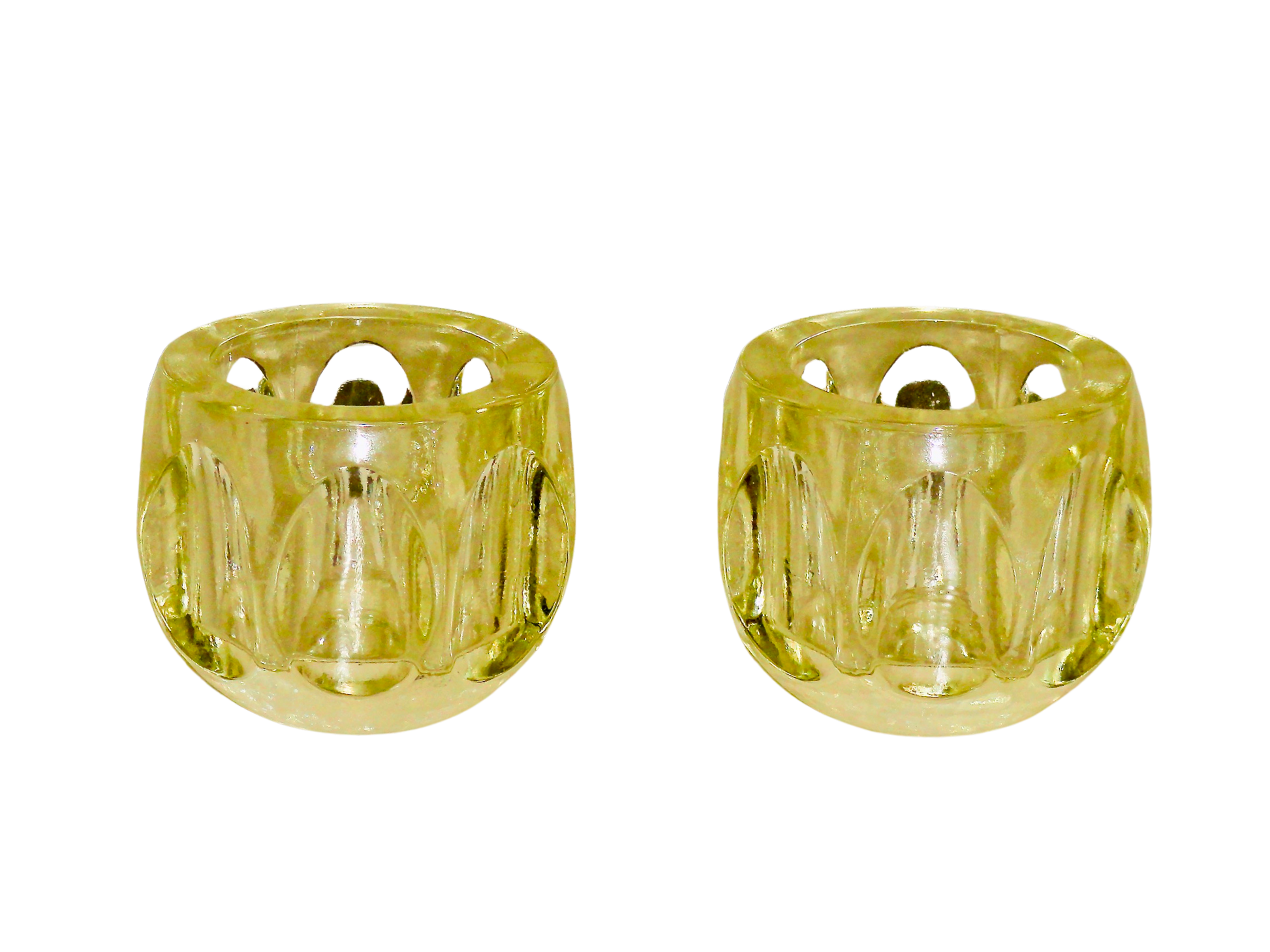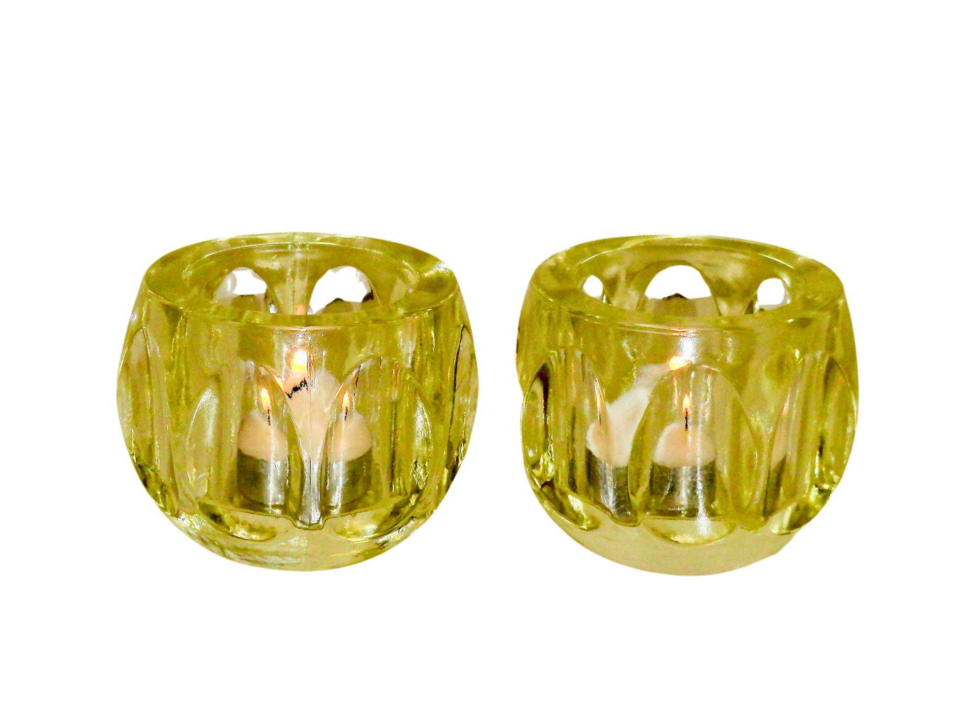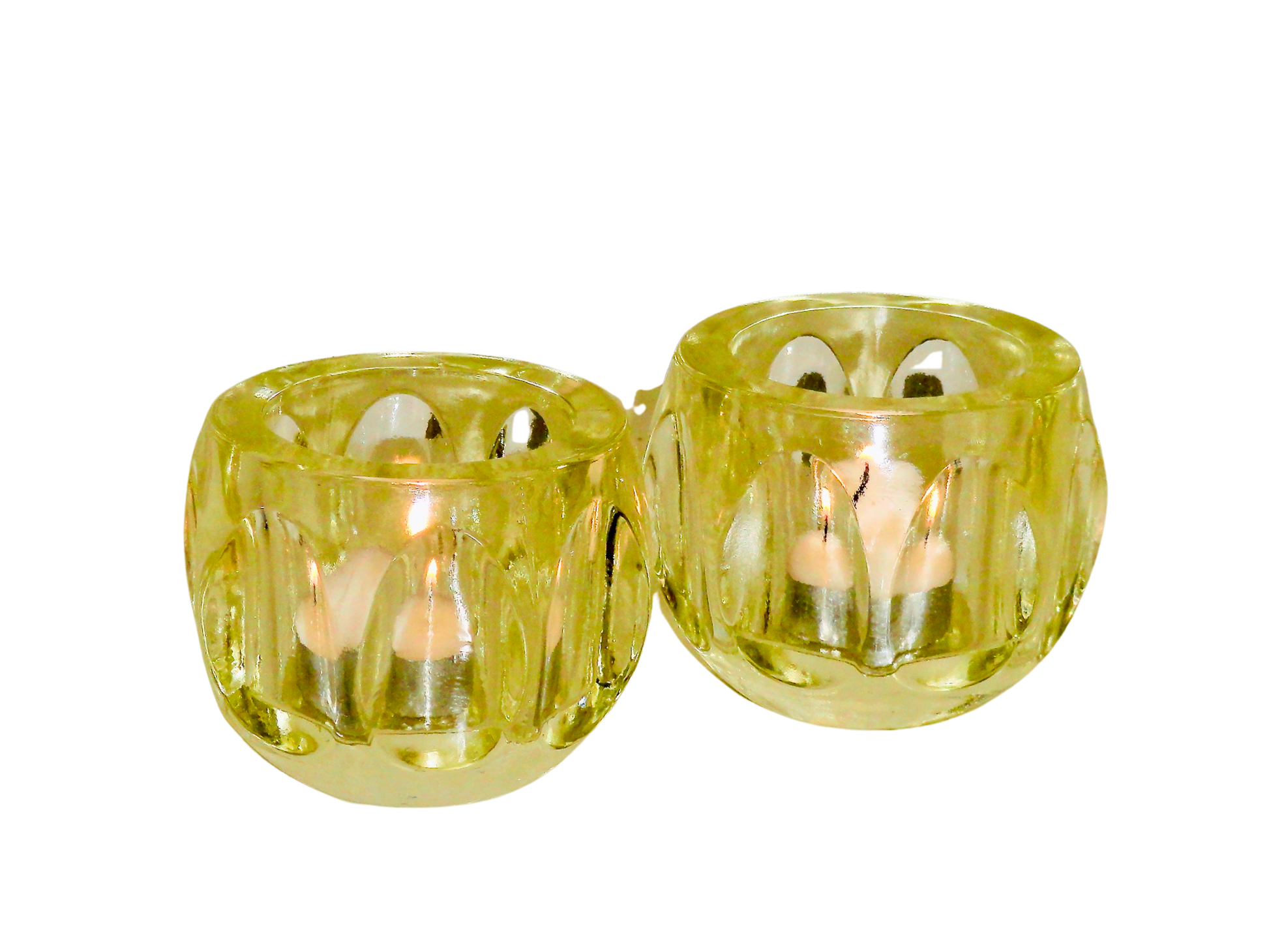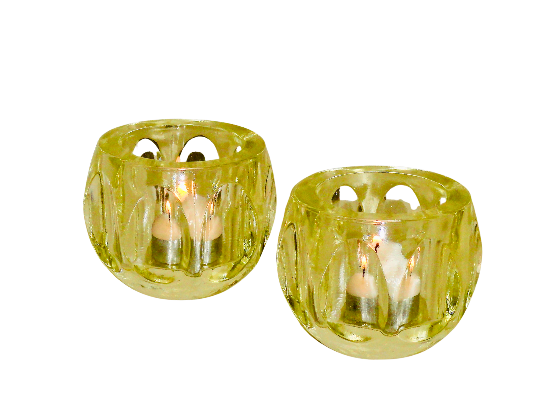 Flamma, Set de Candelabros Votivos de Vidrio Prensado, Agua, 7 cm Alto x 9.5 cm Diámetro, Diseño Vintage con Patrón en Relieve.