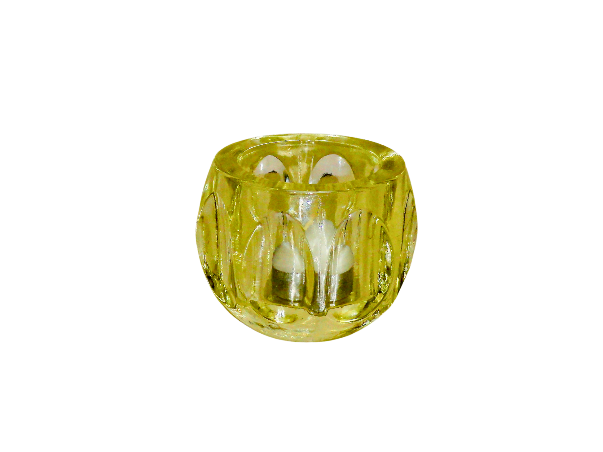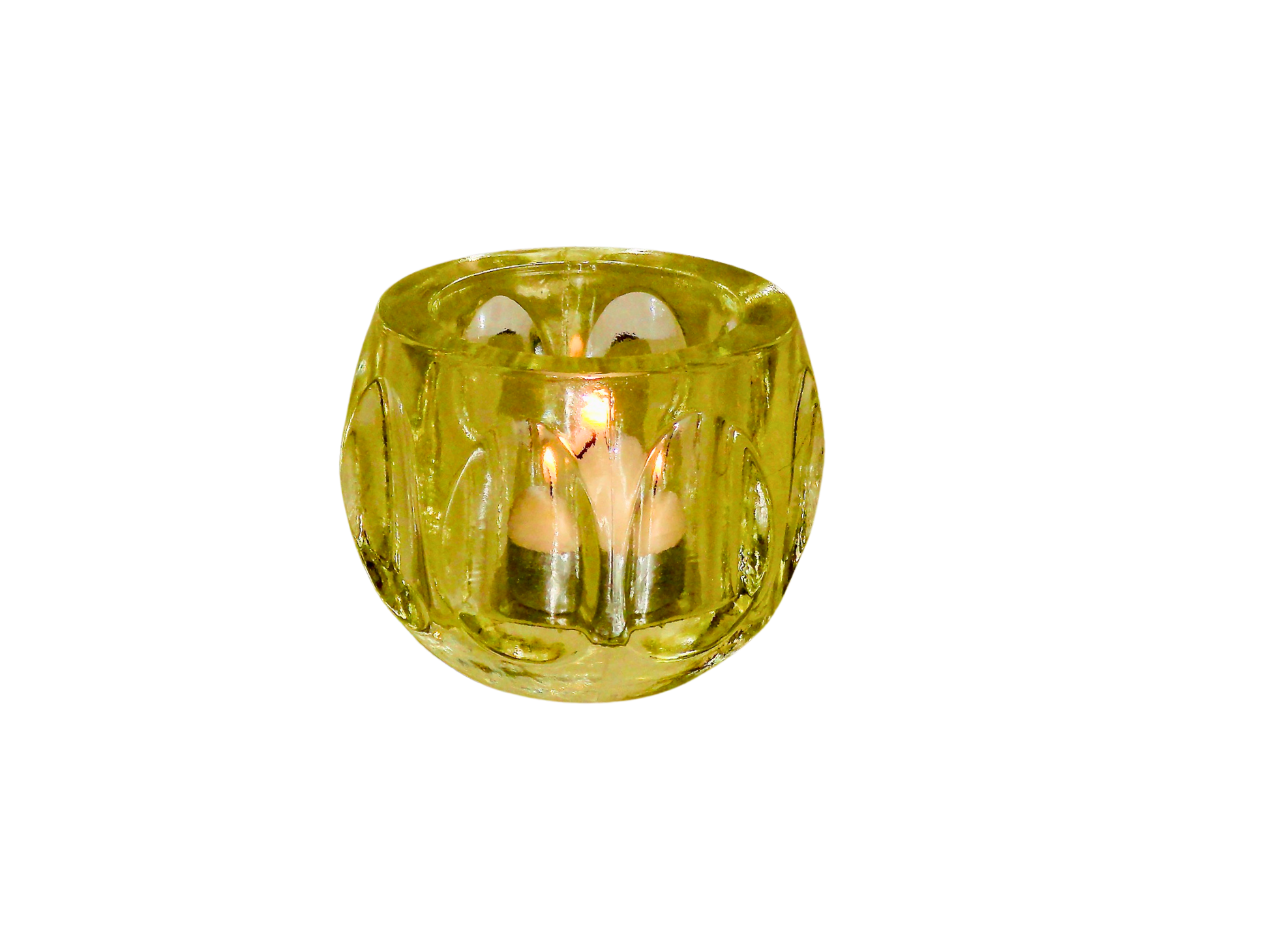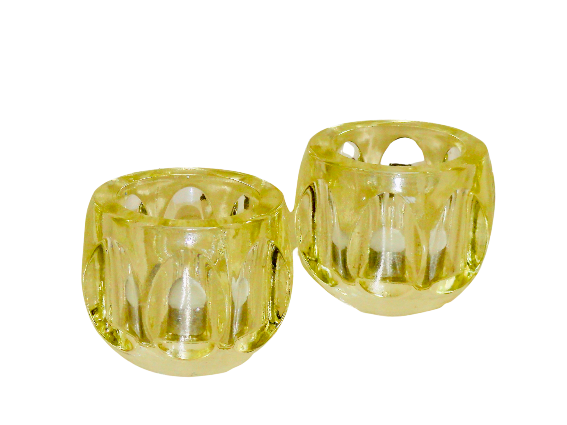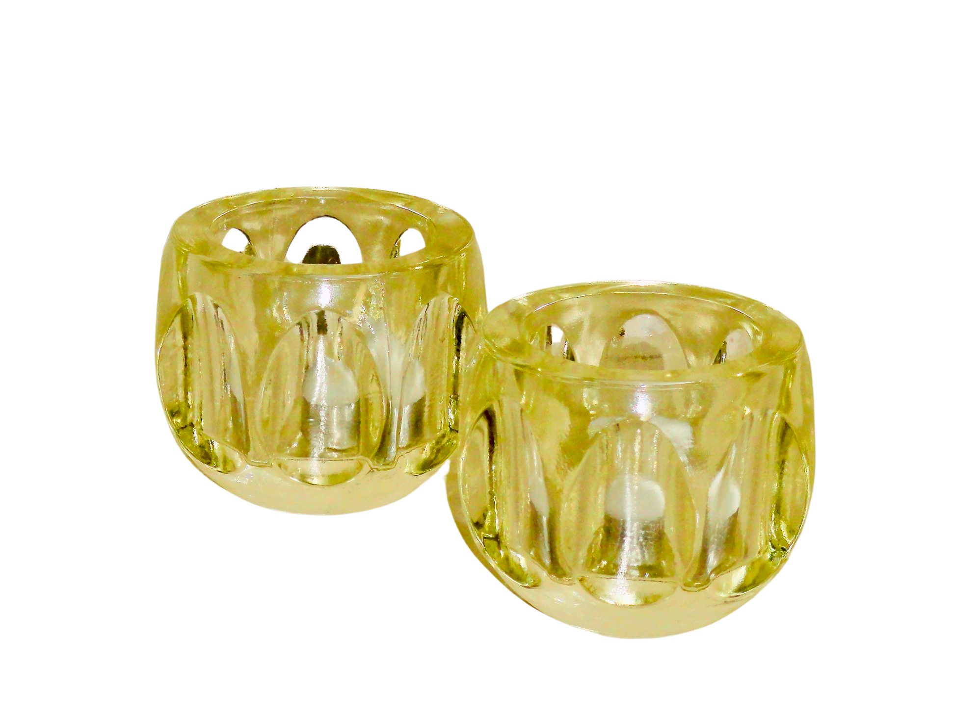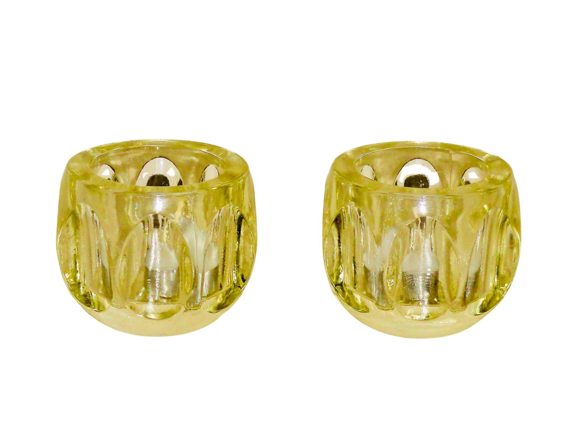 Flamma, Set de Candelabros Votivos de Vidrio Prensado, Agua, 7 cm Alto x 9.5 cm Diámetro, Diseño Vintage con Patrón en Relieve.