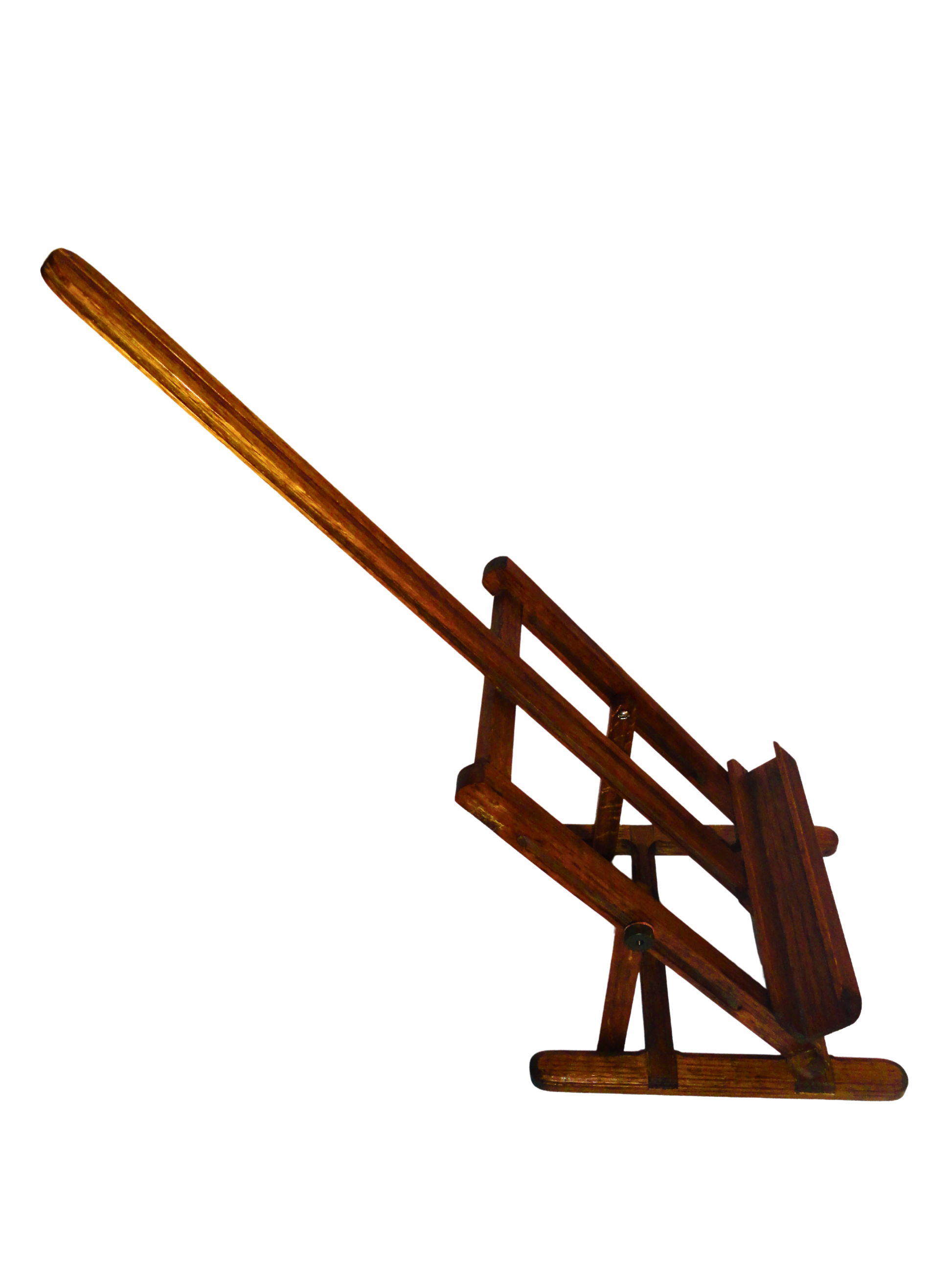 Descubre este elegante caballete de mesa, una pieza única tallada en madera de Teka con herrajes de latón que combina funcionalidad y estilo vintage. Diseñado para exhibir libros, cuadros o menús, este versátil soporte plegable ofrece tres posiciones de inclinación ajustables para adaptarse a tus necesidades: una posición mínima de 87 grados con 61.5 cm de altura, una posición media de 67 grados alcanzando 49 cm, y la posibilidad de plegarse completamente a 0 grados con 67.5 cm de altura. Su construcción robusta en madera de Teka garantiza durabilidad, mientras que su diseño clásico añade un toque de distinción a cualquier espacio. Perfecto para artistas, coleccionistas o como elemento decorativo en el hogar, este caballete combina practicidad con un encanto atemporal. Su tamaño compacto lo hace ideal para espacios reducidos, mientras que su mecanismo de ajuste permite una configuración sencilla y versátil.