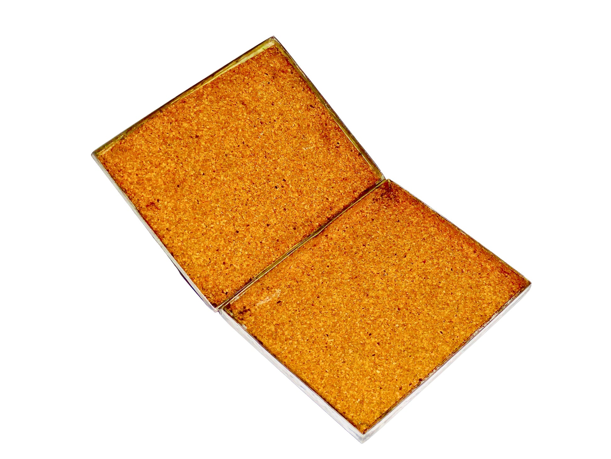 Descubre la elegancia atemporal de esta caja decorativa vintage, una pieza artesanal única elaborada en latón con un distinguido baño de plata. La superficie presenta un cautivador acabado martillado a mano que crea una textura distintiva y sofisticada. El interior está cuidadosamente forrado con corcho en ambas caras, proporcionando una superficie suave y protectora ideal para guardar tus objetos más preciados. La bisagra longitudinal completa garantiza una apertura suave y duradera. Esta versátil pieza es perfecta como joyero o para almacenar pequeños tesoros personales. Cada caja es única debido a su proceso de fabricación artesanal, lo que la convierte en un elemento decorativo excepcional para cualquier espacio. Sus detalles meticulosos y acabados de alta calidad la convierten en una pieza que combina funcionalidad con estilo clásico. Ideal para quienes aprecian los objetos con carácter y historia.