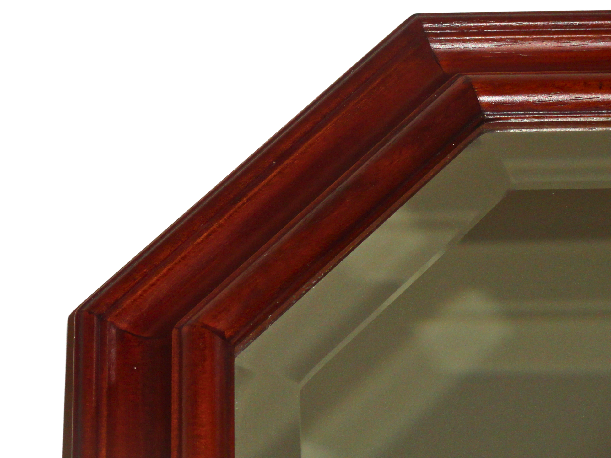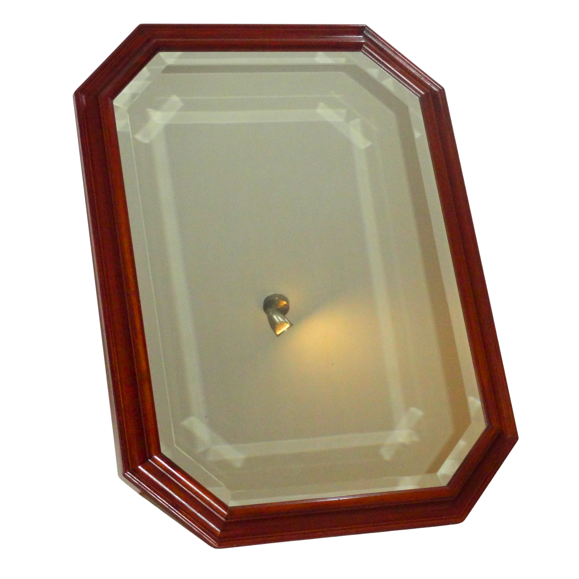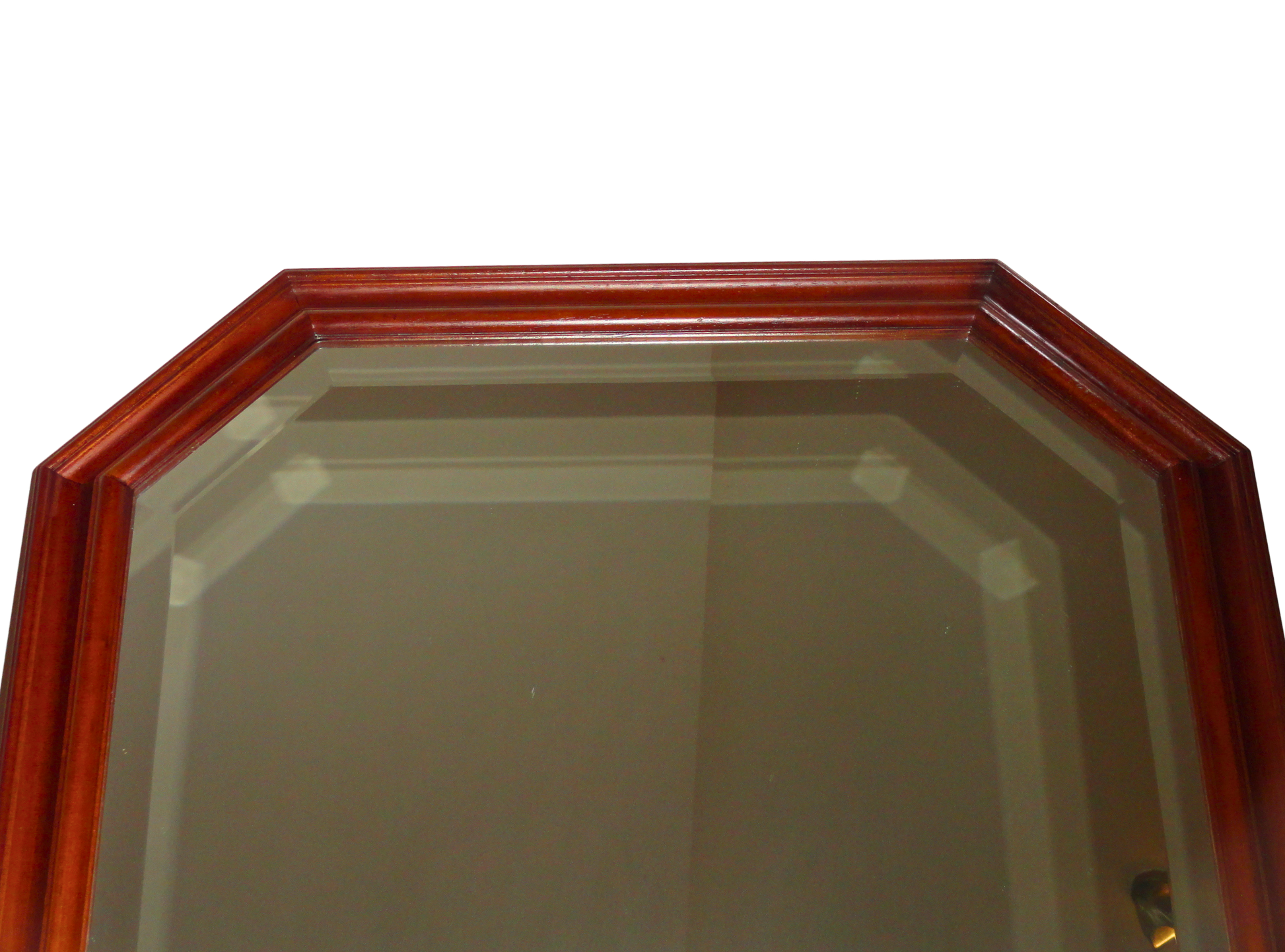 Espejo con un Marco Octogonal de figura geométrica de ocho lado, Su orientación vertical es más alta que ancha, fabricado con un marco de Madera Maciza de Nogal, con un acabado oscuro y brillante. El marco es grueso y presenta un diseño de capas con un borde interior biselado. El cristal central es de forma rectangular y está rodeado por un biselado de cristal interior que sigue la forma octagonal del marco de madera. Esto le otorga una mayor profundidad y un toque clásico o vintage, lo que añade un toque de elegancia y estilo, y es una pieza decorativa que complementa la decoración de interiores de estilo Neoclásico, que aporta un toque de calidez y distinción a cualquier estancia, como un vestíbulo, un dormitorio o un salón. Puede complementar decoraciones elegantes o rústicas. Los espejos planos reflejan la luz de manera regular, lo que permite obtener una imagen clara y sin distorsiones. Cuenta con un ojillo de colgado vertical. Made in Italy, exportado por F.A.L. s.n.c. 55050 Astracaccio Bagni di Lucca (Lu) - Italia, comercializado en México por Distribuidora Liverpool S.A de C.V.