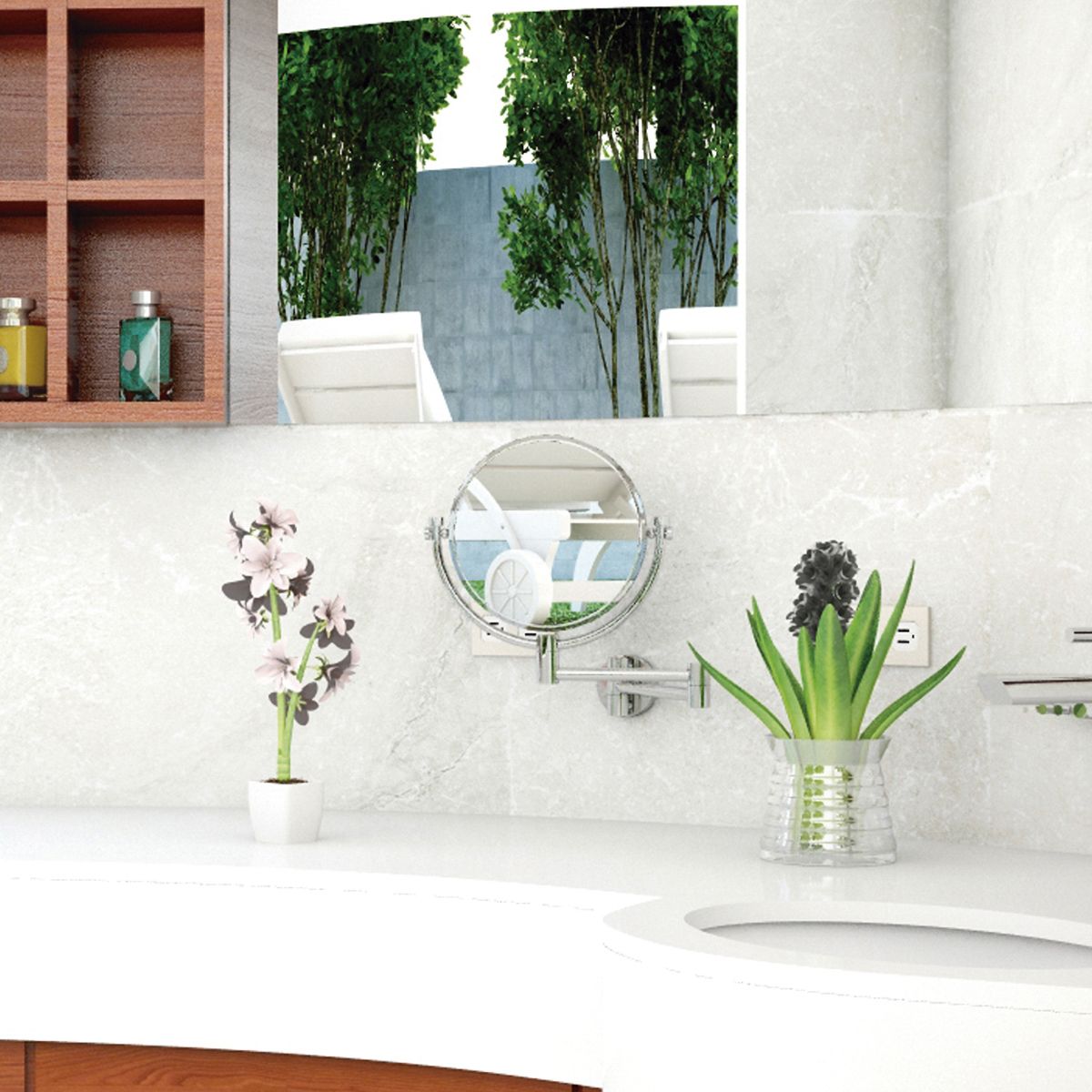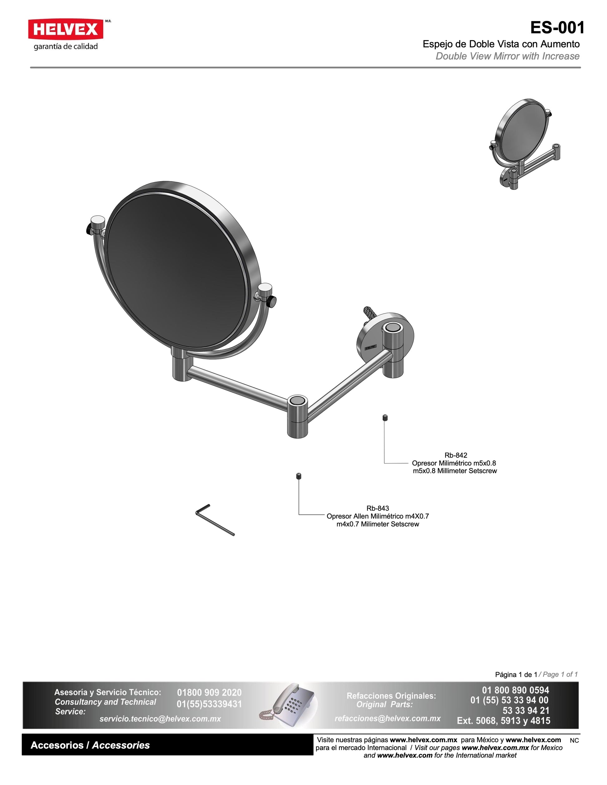 Helvex, Espejo Doble Vista con Aumento 3X, Cromado, Espejo y Latón Cromado, México - S XXI, 19.1 cm diámetro x 26.2 cm alto, 2.5 kg.