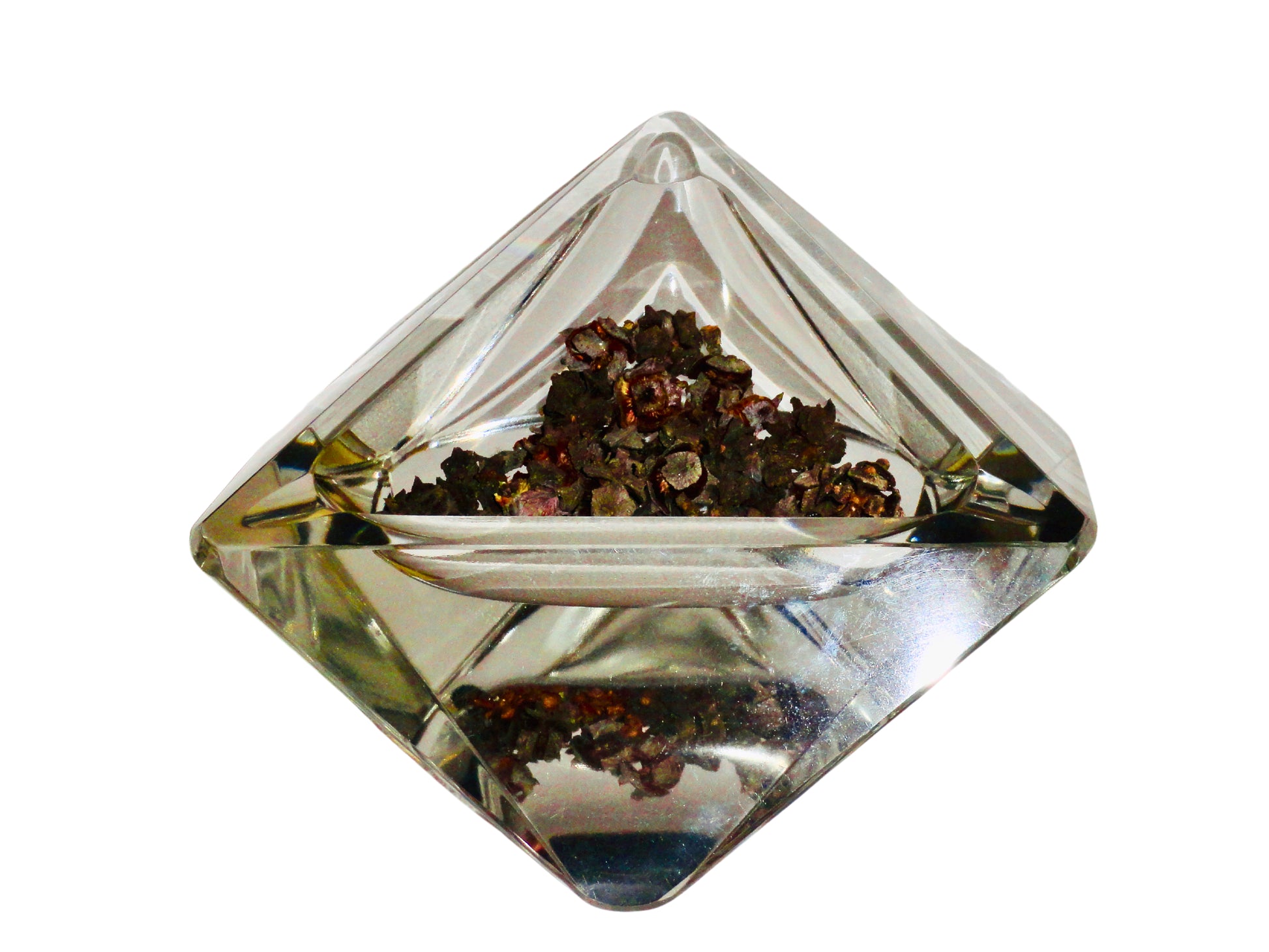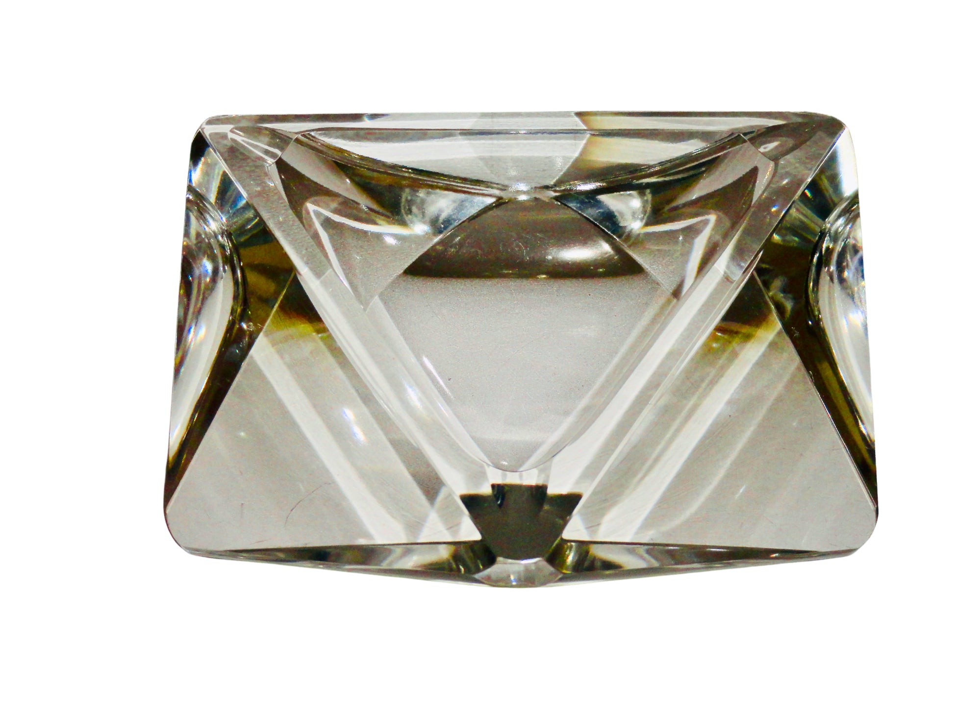 Cenicero Decorativo, de forma geométrica de líneas elegantes, de Vidrio de Neodimio de Alejandrita Soplado a Mano, casa Mandruzzato, Murano - Venecia - Italia, Art Glass, Abstract Art, Art Nouveau, Late 20th Century (1970-1999), fecha estimada de producción entre 1970 - 1979. Réplica de estilo cubista, del SXX, periodo Art Déco (movimiento de diseño que floreció en las décadas de 1920 y 1930), originario de Gablonz an der Neiße (Jablonec nad Nisou), actual República Checa, de la firma de diseño y fabricación de Cristalería artística Curt Schlevogt - Colección Ingrid, Vintage. Publicado en el libro: Ingrid - más que una marca. Medidas: 20.0 cm diámetro 5 cm alto. Peso: 854 gr.
